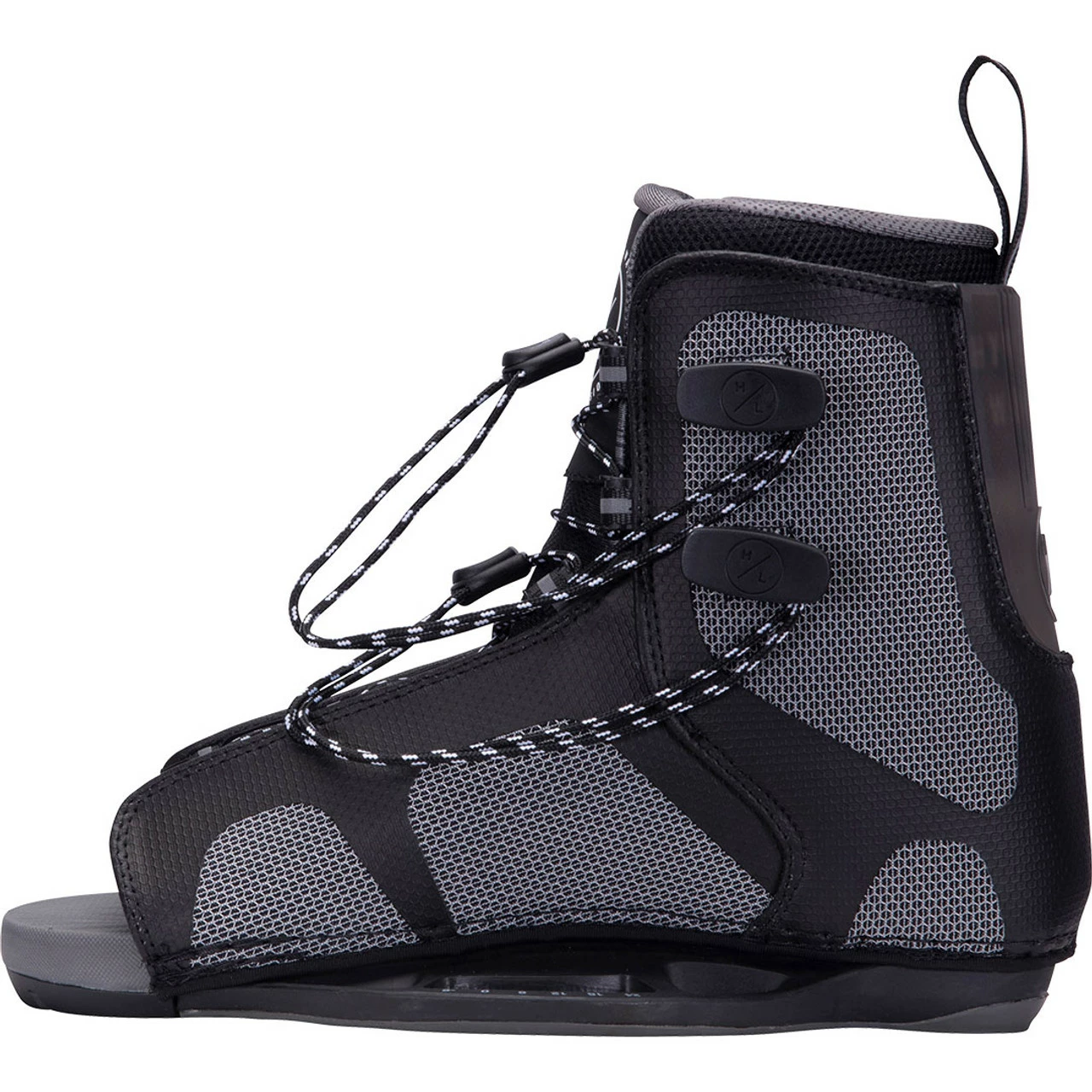 Creating a shape to take riders’ skills to the next level was the goal behind the State 2.0. Learning from other asymmetrical designs, we found that creating a shorter but more effective edge on a rider’s toe-side made hard to learn wake jumps a lot easier. This is because there is less rail to initiate when applying toe-side pressure. Once set, the smoother toe-side transition is then held by the State 2.0’s thinner profile molded-in fins, creating less drag and a better release off the top of the wake. Subtle Molded-In Toe-Side Footbed Risers were also added to help a rider create more leverage when pressure is applied. The longer, more traditional heel-side edge compliments this asymmetrical design by allowing the natural body position of a rider to generate stability and speed into the wake without a loss of pop due to reduced surface area. The State 2.0 has been tested and proven to be the best choice for a rider looking to master the foundations of wakeboarding.