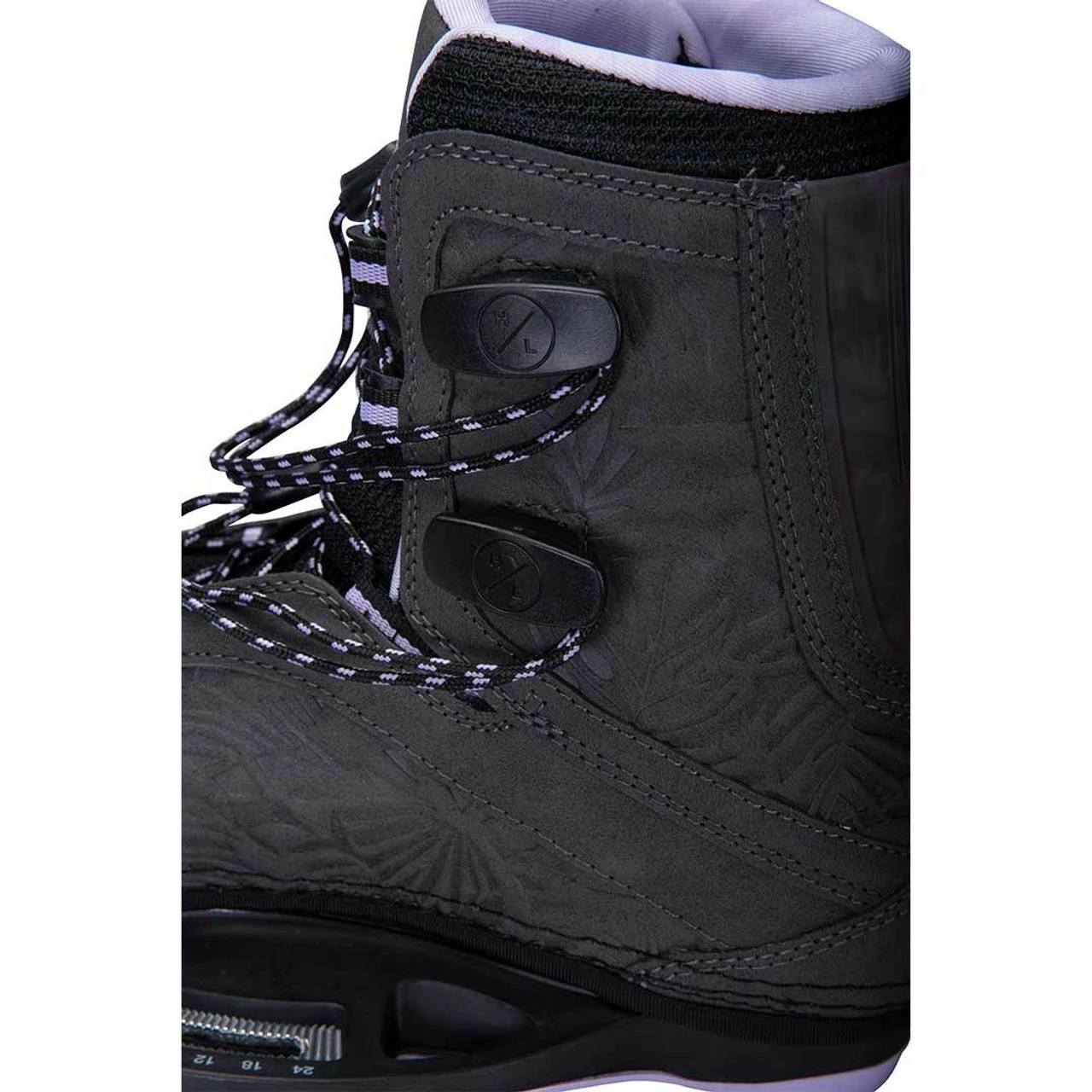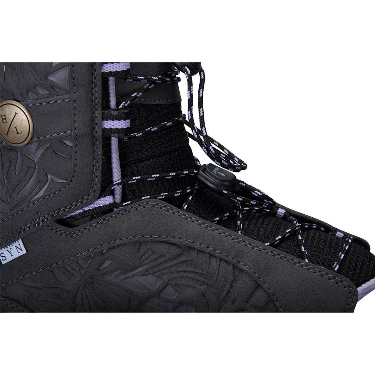 Until now, there has never been a binding in the Hyperlite line designed specifically for a female rider. The new Syn binding is built from the ground up to fit and function for ladies looking to take their riding to the next level. The Syn has reduced internal volume and a lower cuff to accurately fit a woman’s foot and calf. The dual quick cinch lace system allows for fine tuning of boot tension. All of these features are built atop our Low Pro Plate System which puts the rider closer to the deck of the board for maximum feel and control.