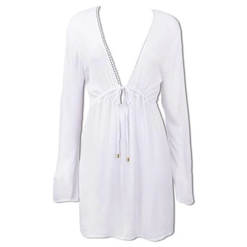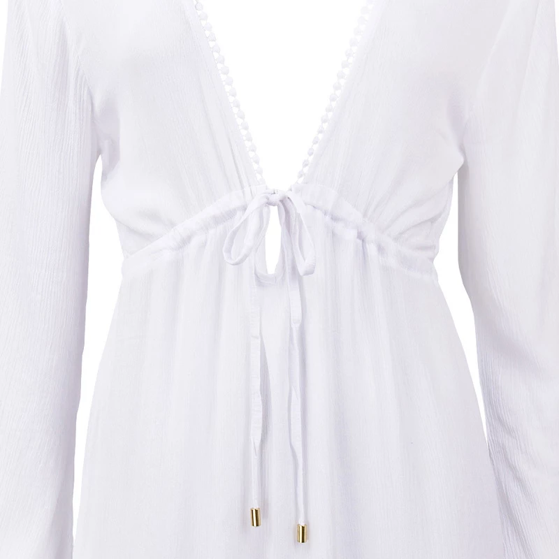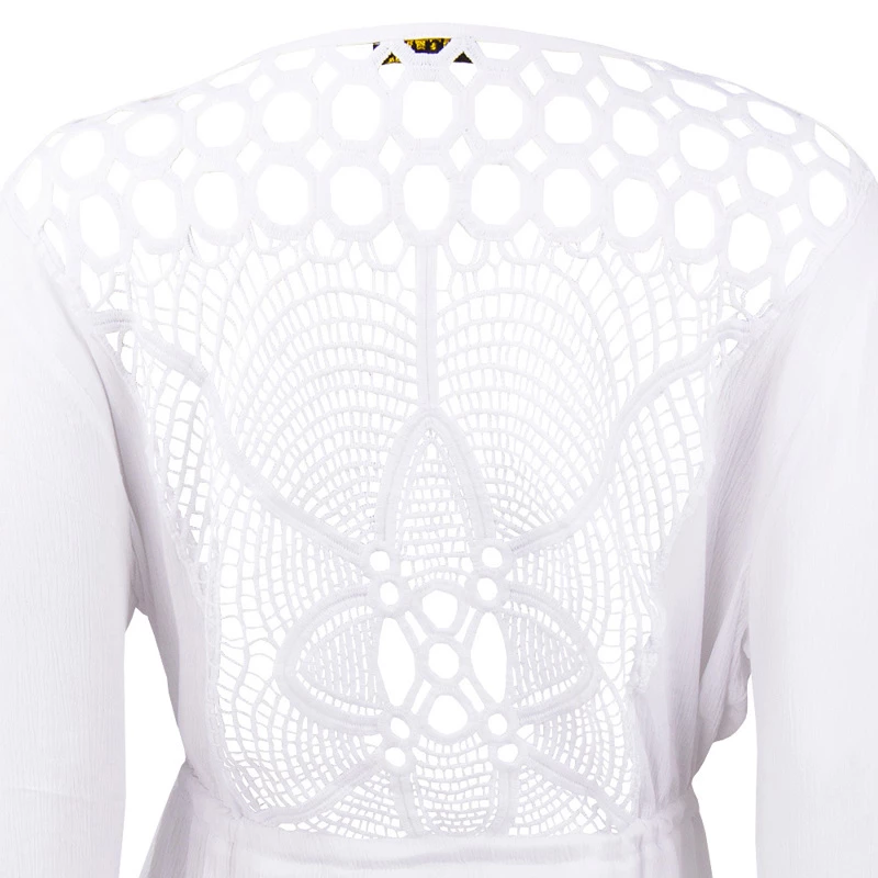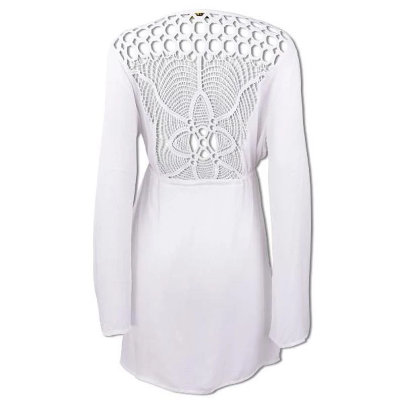 Spruce up your beach attire with the LA Class Back Panel Long Sleeve Cover-up. This cute beach coverup features a beautiful lace back panel, drawstrings in the front to tighten the coverup around the waist, and light-weight fabric.
