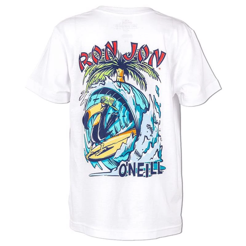 The O’Neill Ron Jon Kids Super Shredder Collaboration Tee features a cool looking Toucan surfing a big wave.