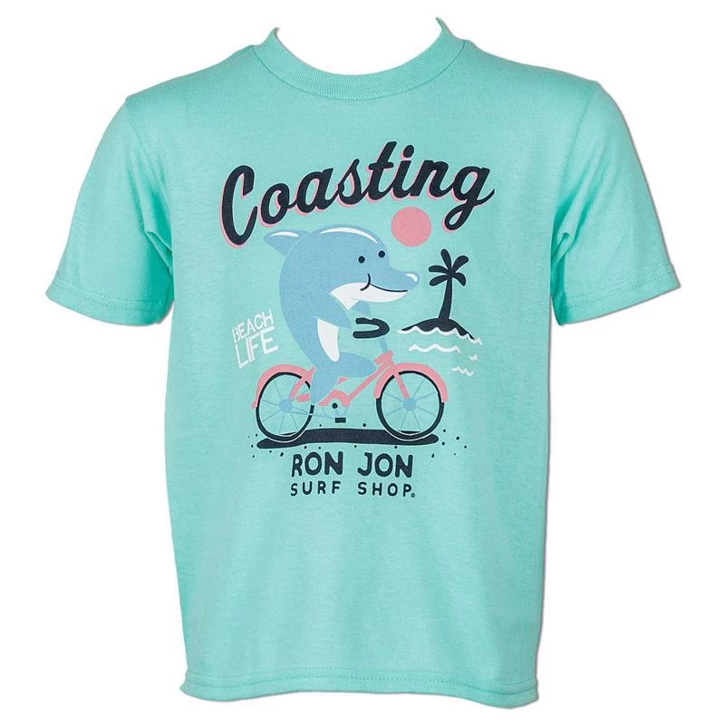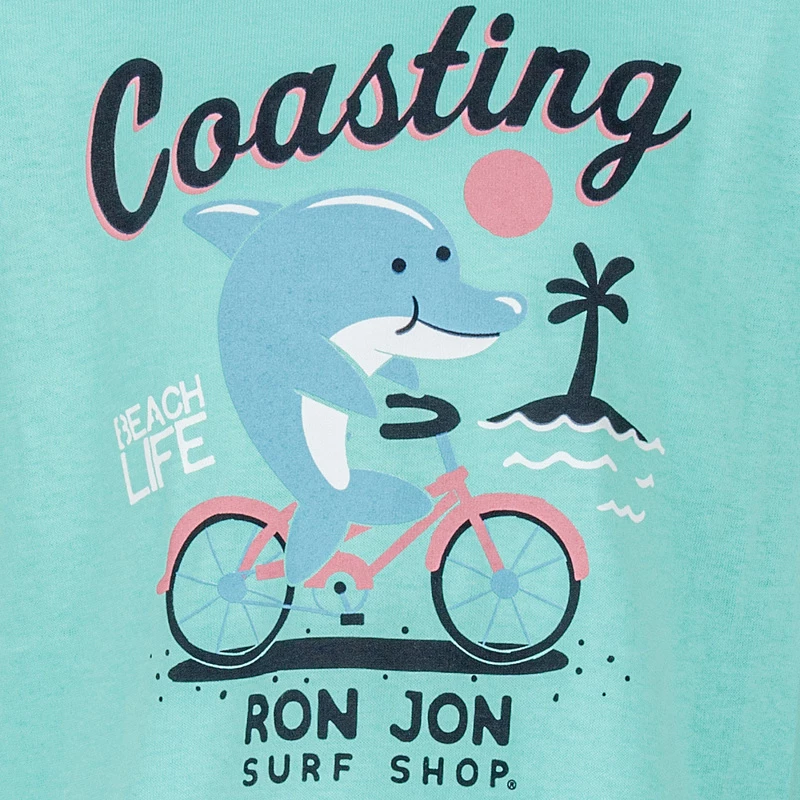 This friendly dolphin is just coasting, living the beach life, and riding their bike along the seashore. This is a fine fun t-shirt for your toddler.