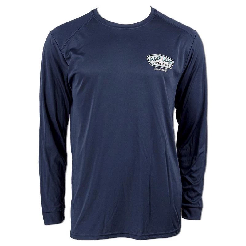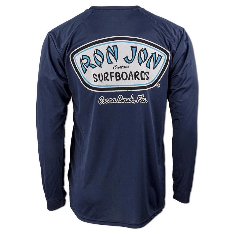 This long-sleeve sun shirt features the popular Ron Jon Surf Shop Cocoa Beach Custom Surfboards logo as a large distressed graphic on the back, with a smaller version on the front. The special performance fabric offers a UPF rating of 50+ to help protect you from harmful solar rays.
