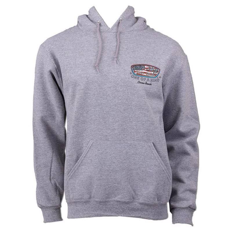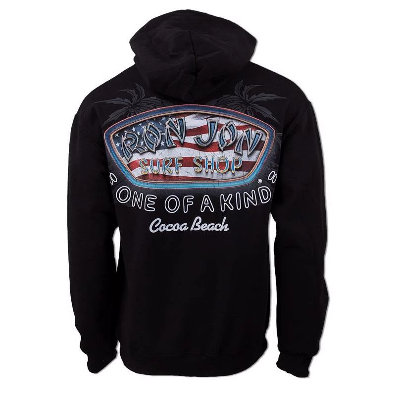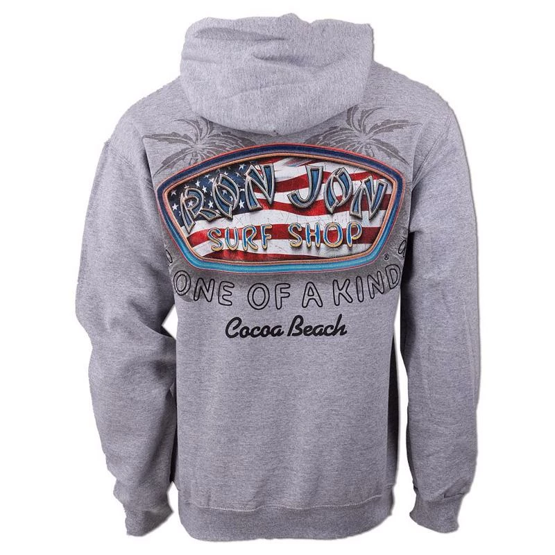 Ron Jon Faded Flag V2 Pullover Hoodie is our latest flag design featuring a distressed design within and around the Ron Jon Surf Shop badge logo.