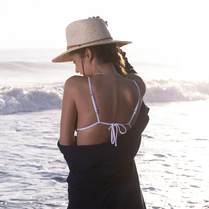 Ron Jon Juniors Blanco Westwood Tri Bikini Top is a great option for any vacation. It features a cute striped pattern, ruching on the bottom of the panels to allow you to adjust the cups, adjustable shoulder straps, and an adjustable tie back strap.