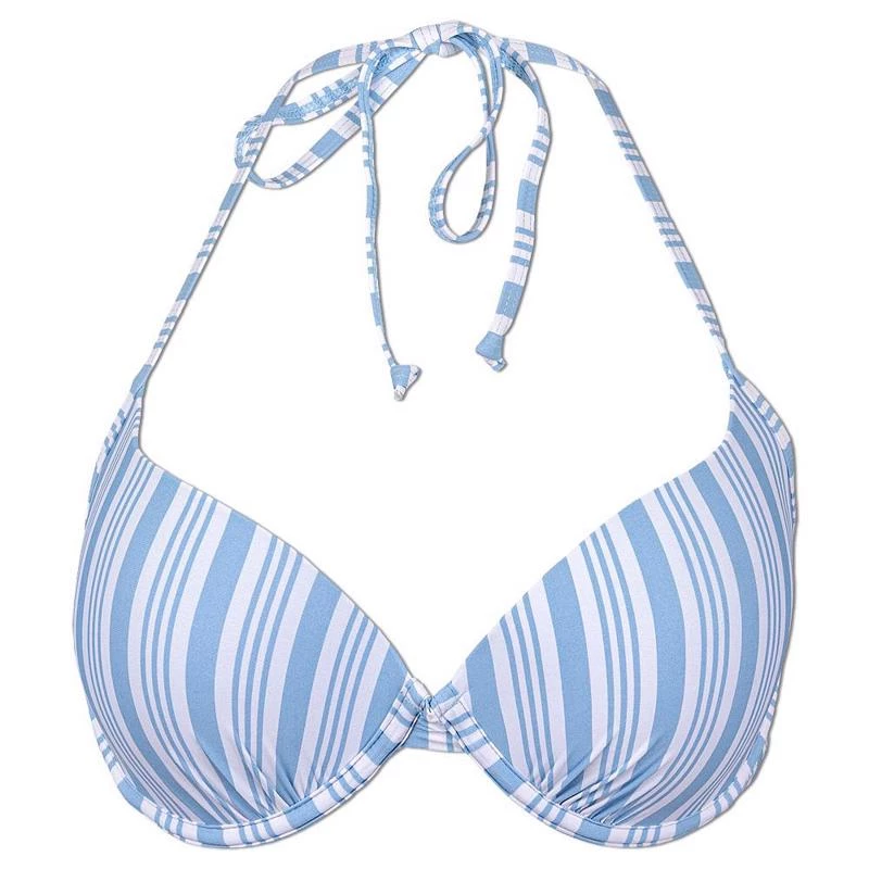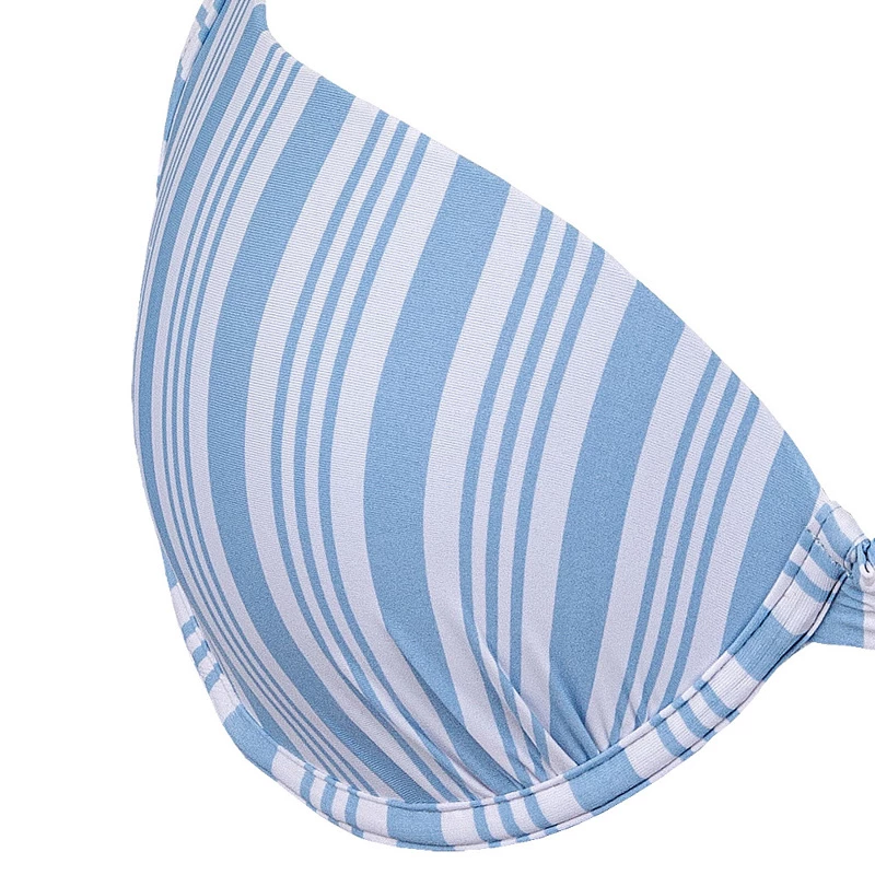The Ron Jon Juniors Blue Sky Underwire Push-Up Bikini Top fixed cup swim top with underwire support. Strap back and tie neck.