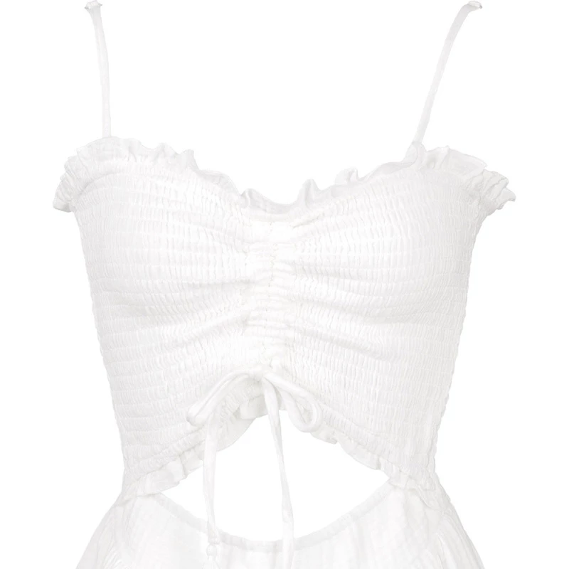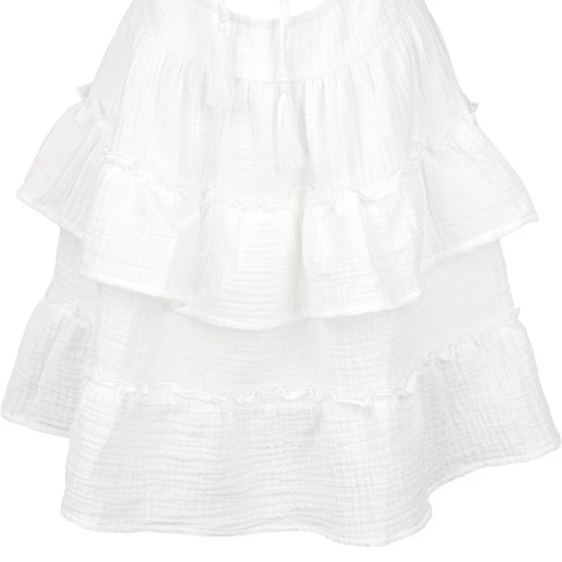 Perfect for sunny days, the Ron Jon Juniors Gauze Ruffle Dress features an adjustable smocked bust area and a tiered ruffle skirt.