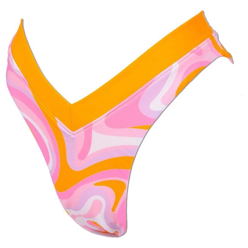 Stand out at the beach this summer with the Ron Jon Juniors Groovy High V Bikini Bottom. This bottom features bright colors to give a 70’s vibe, a high thigh cut, and a V waist.