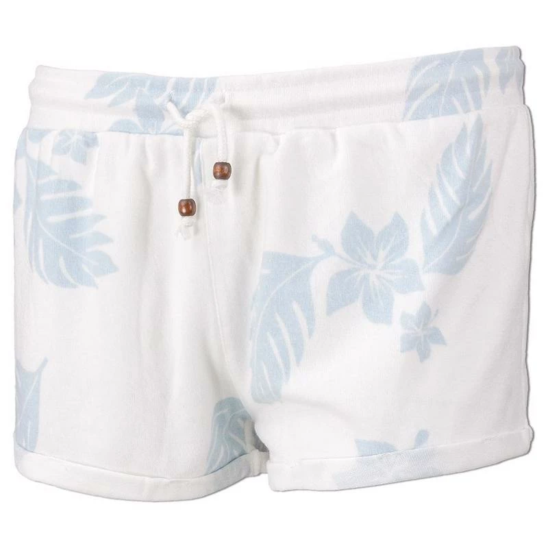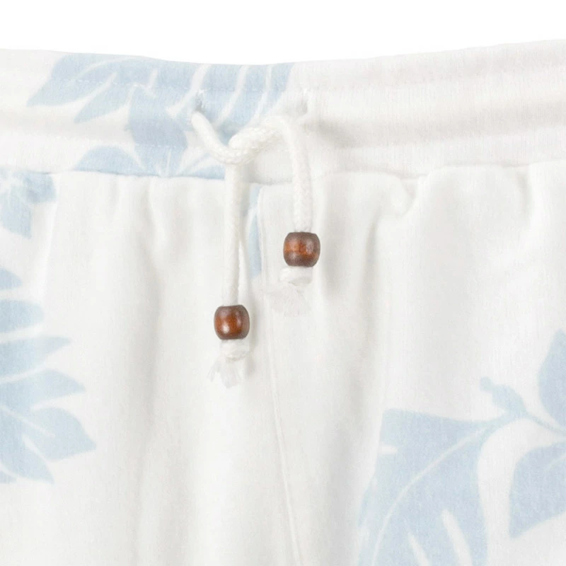 Relax or play in the Ron Jon Juniors Hacci Aloha Print Shorts featuring wooden bead accents on the adjustable drawstring.