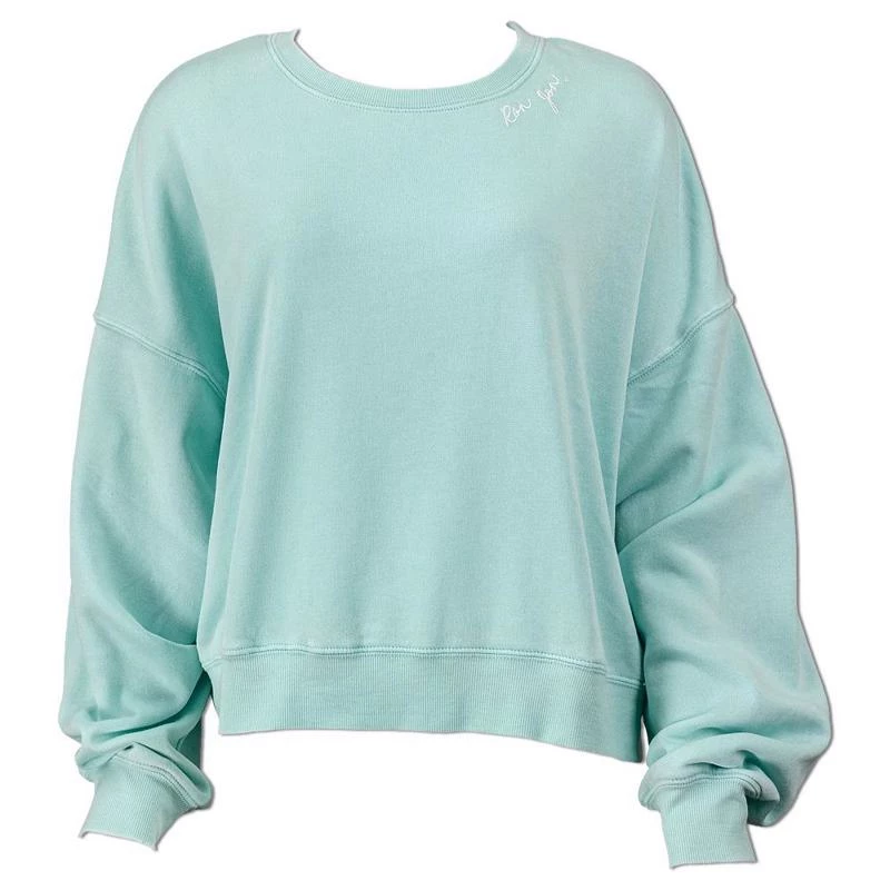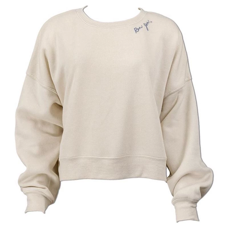 Sometimes simple is best. This Ron Jon Signature Burnout Crop Sweatshirt for juniors features a crew neckline and embroidered Ron Jon cursive lettering just under the collar.