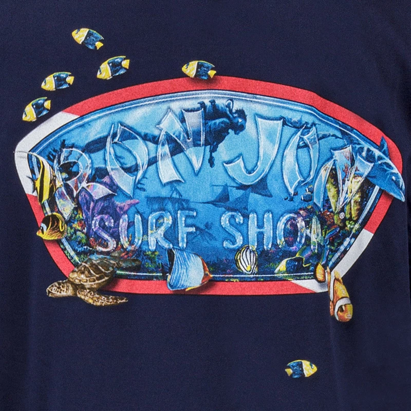 Ron Jon Kids Dive Aquarium UPF 50 Long Sleeve Performance Sun Shirt has a fun fish, diver and turtle graphic. The exceptional performance fabric features wicking technology that transfers moisture three times faster than regular performance tees and offers a UPF rating of 50+ to help protect your kids from harmful solar rays.