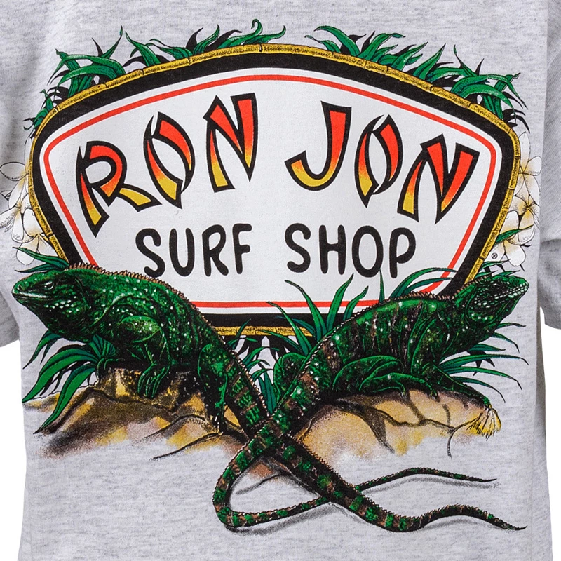 The name speaks for itself. Ron Jon Kids Double Iguana Tee features a large back graphic with two iguanas sitting under the Ron Jon Surf Shop famous badge logo.