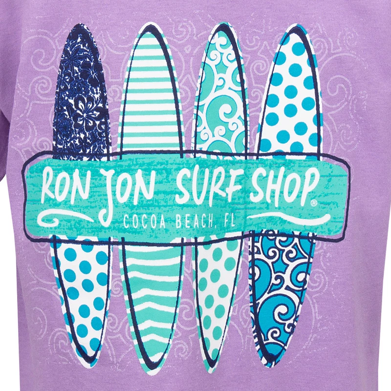 Ron Jon Kids Southern Boards short sleeved t-shirt features a large back graphic with fun print surfboards.