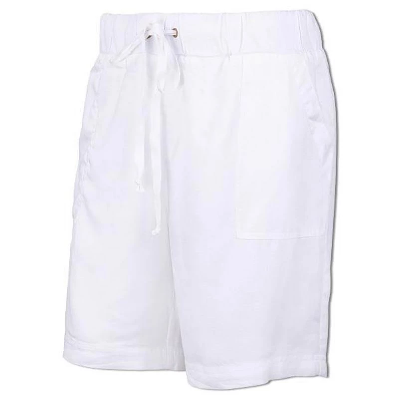 The Ron Jon Ladies Pull On Walkshorts features an elastic drawstring waist, lightweight fabric, two side pockets, and two back pockets.