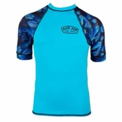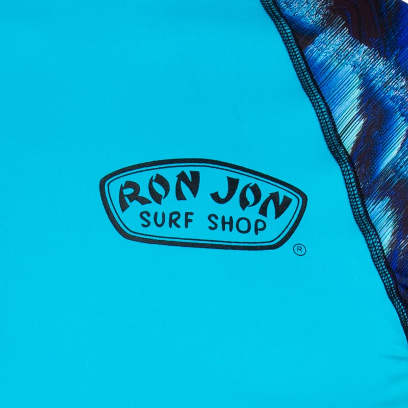 Protect yourself from harmful UVA & UVB rays with the Ron Jon Mens Blue Rash Guard. It features a badge logo screen print on the front and multi-colored stripes on the sleeves.