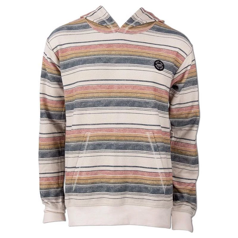 The Ron Jon Stripe Baja Hoodie is a great item to throw on when you go to the beach bonfire, or the backyard fire pit. It’s even good to wear while lounging indoors or running errands. No drawstrings at the hood to worry about and a convenient front pouch pocket.
