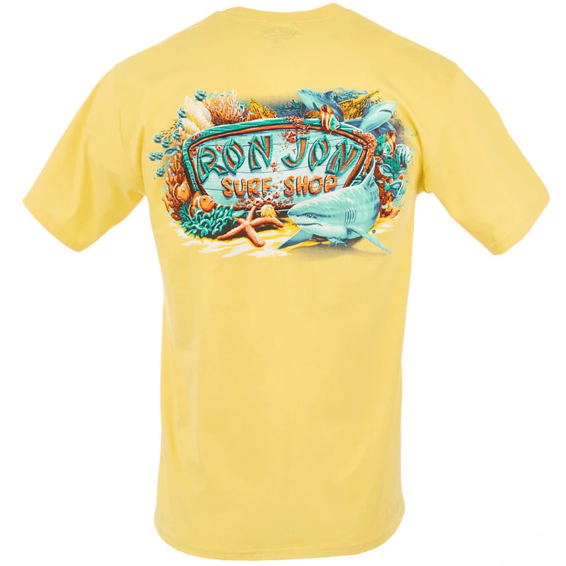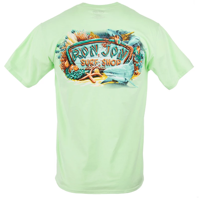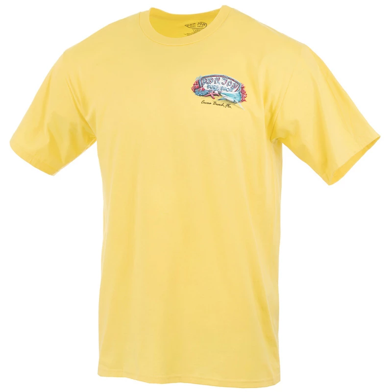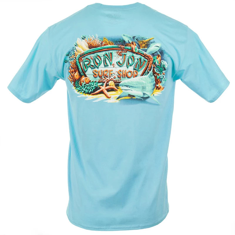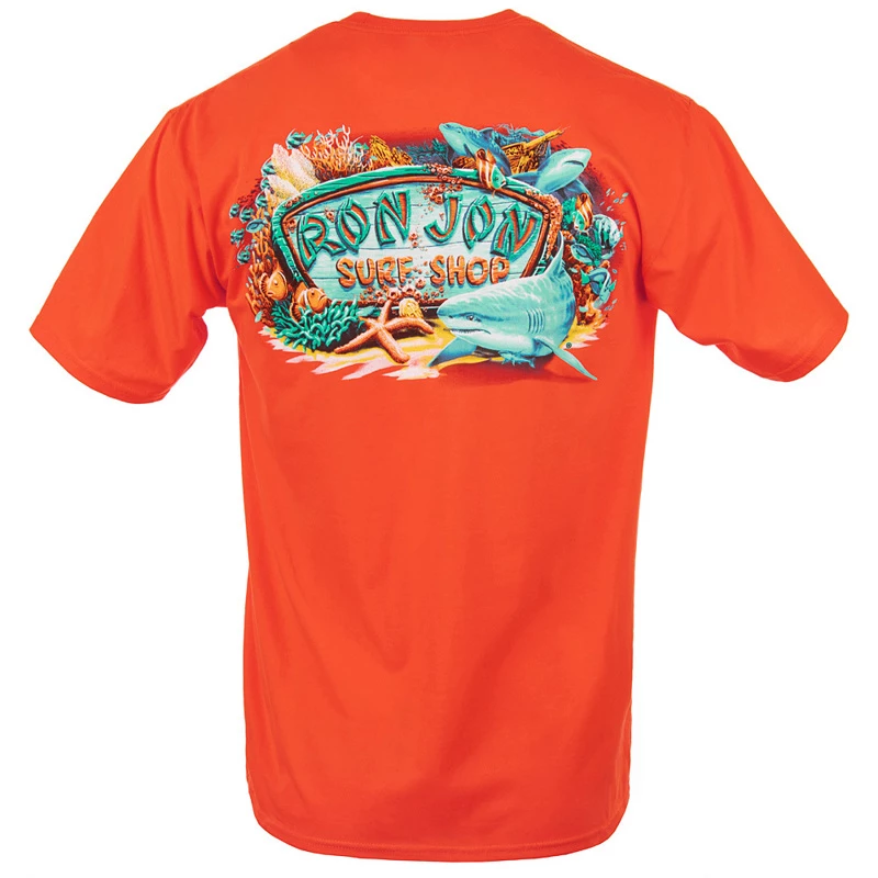 This Ron Jon Ocean Life t-shirt is a really cool shirt with all sorts of sea creatures swimming around a sunken Ron Jon logo at the bottom of the ocean. You’ll love the colorful design and the comfortable fit. It’s perfect for any beach day or casual outing.