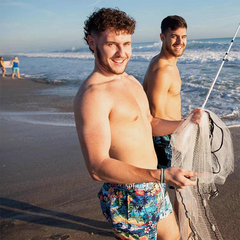 The Ron Jon Party At Sunset Swim Volley is a classic style men’s swimsuit from The Endless Summer® apparel line. The print on these men’s swim volleys is bright and colorful, just like a tropical sunset. Includes two front side slash pockets with mesh for drainage, and one patch style back pocket with drain grommet.