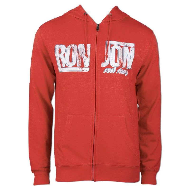 For those times when a pullover hoodie just won’t do! The Ron Jon Split Name Zip Hoodie features a full front zip closure and distressed, aged looking lettering.
