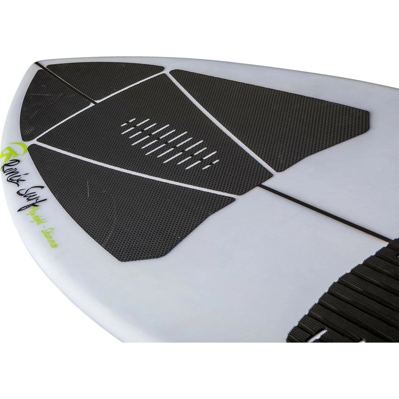 A new pro skim shape with the least amount of swing weight designed for the next generation of rippers. This shape now comes with tail rocker for more control while riding forward, and is less likely to dunk the nose riding switch. It’s over 25% thinner than any other Ronix surfer and comes with a minimalist flyweight construction for the least amount of weight. Less weight equals added rotation on your tricks and the thinner profile sits even deeper for more natural board control. A high-end skimmer complementing the wide profile Blunt Nose skimmer, and the stiffer Carbon Air Core 3 model. A chance to show up Mom & Dad.
