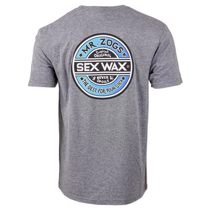 The Sex Wax Fade Tee features the famous Mr. Zogs Sex Wax logo with a dual color fade gradient background. Large version on the back, with a smaller version on the front.