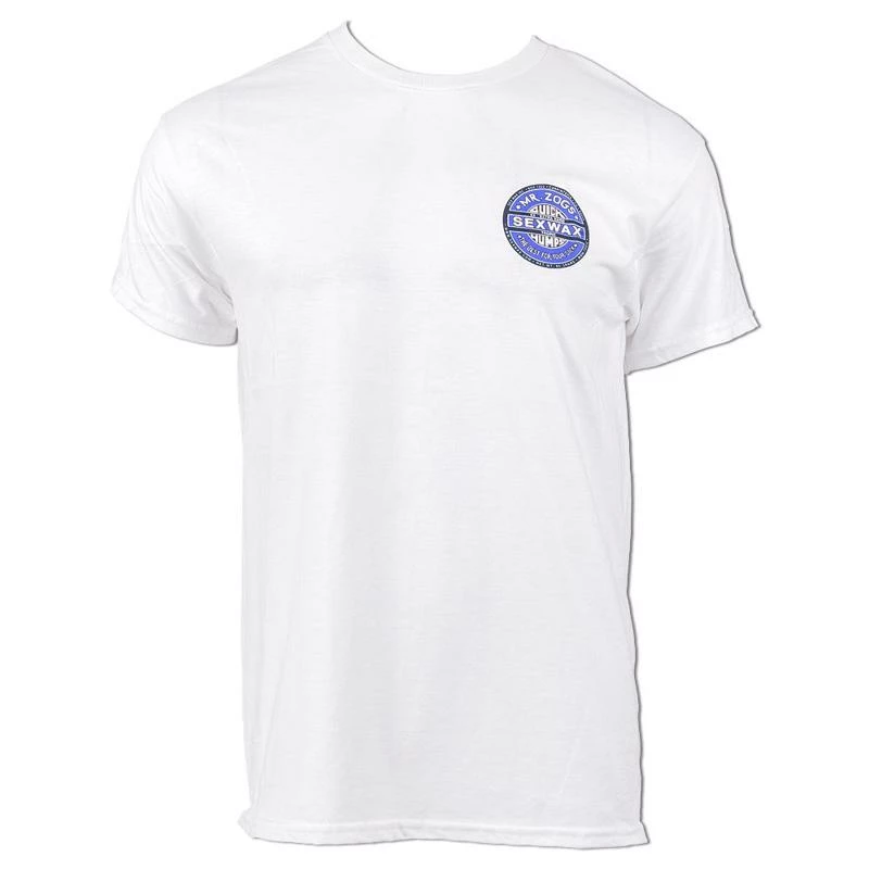 This short sleeve t-shirt from Sex Wax features the Mr. Zogs Sex Wax Quick Humps logo. A large version on the back, with a small version on the front.
